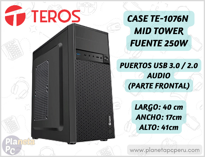 Case Teros TE1075N, Mid Tower, ATX, 250W, USB 3.0 ... Case Teros TE1075N, Mid Tower, ATX, 250W, USB 3.0 / 2.0, Audio, Negro