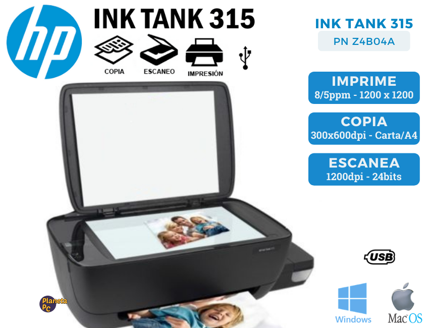 IMPRESORA. MULTIF. HP TANK 315 - Copiadora/Impreso... IMPRESORA. MULTIF. HP TANK 315 - Copiadora/Impresora/Escáner